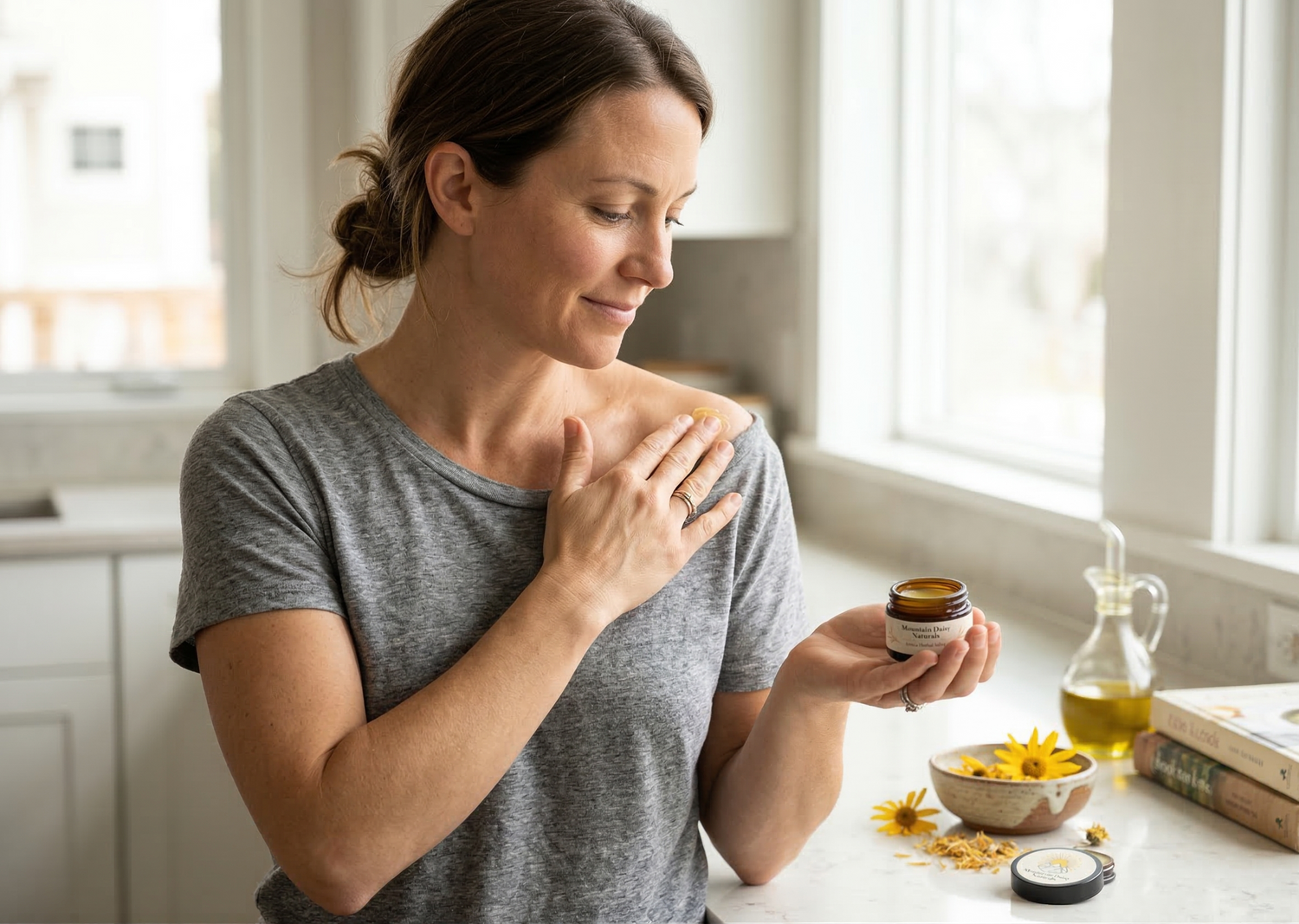 Made with arnica in a nourishing salve base, Mountain Daisy is meant to be a gentle addition to your daily self-care routine.